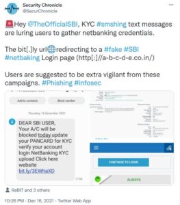 KYC SMShing campaign targeting SBI customers