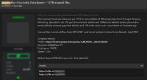 PIZZA Sale on Dark web — 13TB Internal files & 1Million credit card data being sold Hello netizens! We are writing late about...